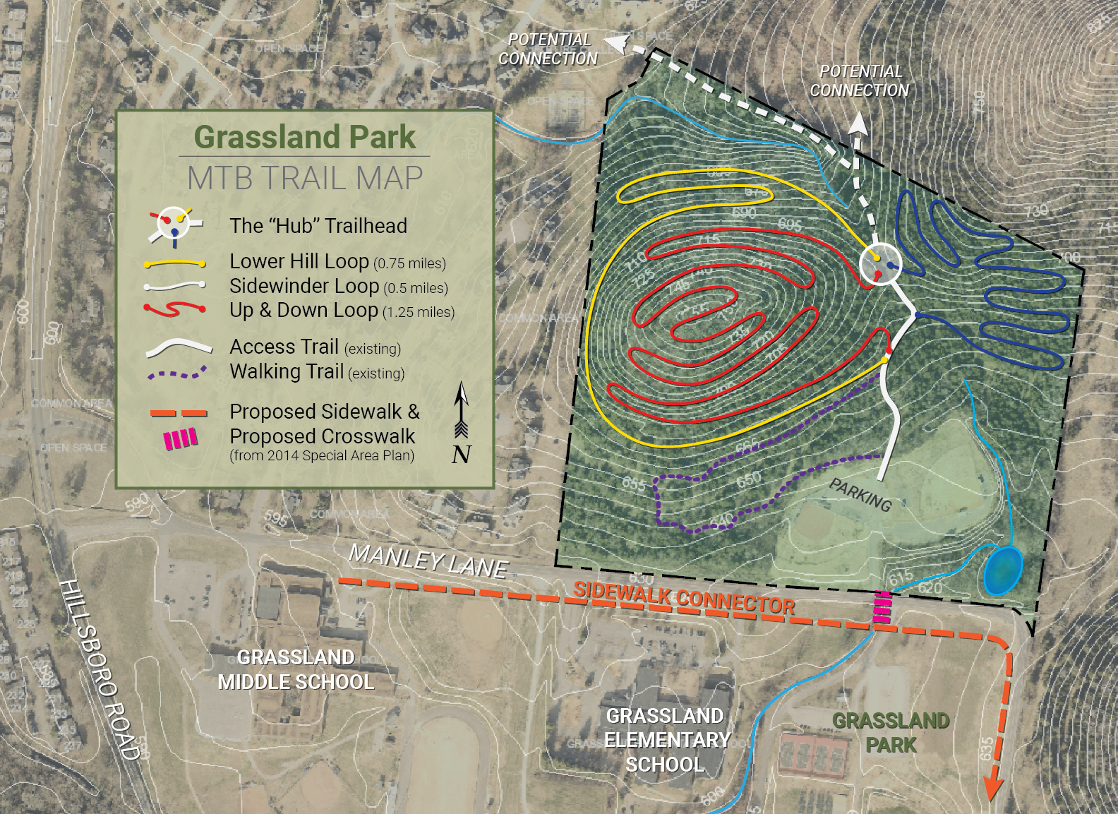 Grassland Park is owned and operated by Williamson County Parks & Recreation (WCP&R) and in partnership with SORBA. The proposed 3 mile singletrack trail system will be designed and built for the primary purpose of providing local youth and families the opportunity to experience mountain biking in their own community. The trails will be shorter in length and intentionally designed for beginners and kids due to its close proximity to schools and neighborhoods in the village.